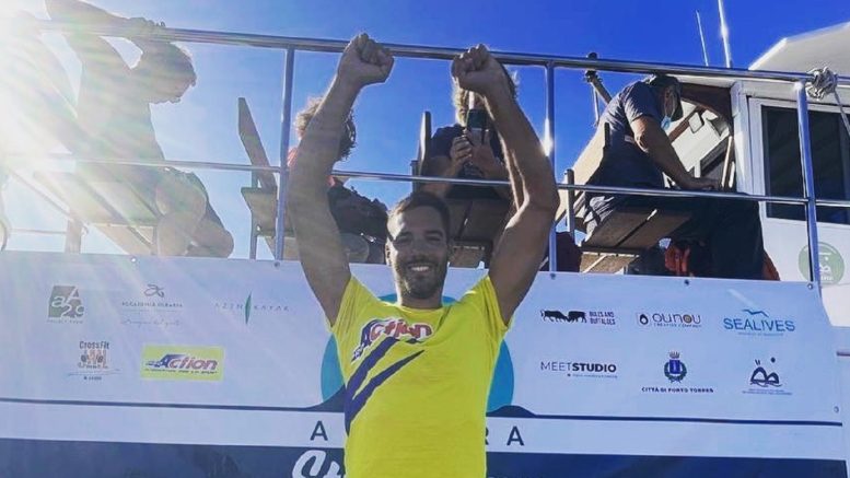 Trentacinque anni di Alghero, Pomponi è un’ex nuotatore professionista che oggi lavora come insegnante di sostegno a Olbia. In passato aveva vinto anche il titolo di campione italiano juniores. L’atleta è riuscito compiere l’impresa, coprire i 42 chilometri di distanza con un tempo effettivo di 13 ore e 49 minuti.