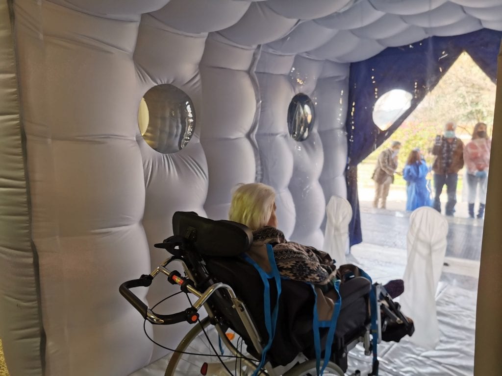 Sperando che vaccini, precauzioni e profilassi consentano di stoppare a breve la diffusione del virus e la fine del pericolo pandemico che tanto influisce sulle interazioni sociali, Villa dei Giunchi ha deciso di investire, di contattare l’azienda del nord Italia che ne detiene il brevetto e di acquistare due case degli abbracci, tante quante le due strutture gestite attualmente sotto il marchio Senior People Care, una a Florinas e l’altra in Abruzzo. Da oggi a Florinas ci si potrà nuovamente stringere in un confortante, rasserenante e sanissimo abbraccio. Diretto ma a prova di Covid, perché la stanza gonfiabile è stata piazzata in uno degli ingressi della casa di riposo, così che i familiari possano accedere dall’esterno e gli anziani non debbano uscire dalla struttura, che è riscaldata e sarà igienizzata dopo ogni utilizzo.
