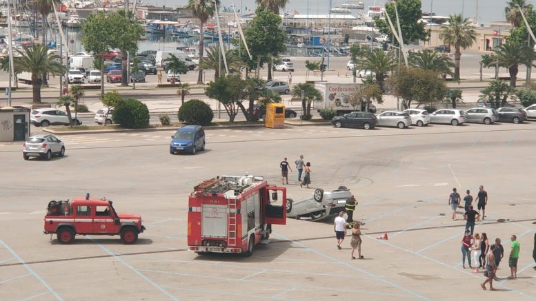 Singolare incidente questo pomeriggio ad Alghero dove un’auto si è ribaltata nel parcheggio di piazzale della Pace. Da una prima ricostruzione della dinamica sembrerebbe che il conducente abbia fatto tutto da solo, non risultano infatti altri veicoli coinvolti. Da chiarire comunque se il ribaltamento possa essere dovuto al cedimento di alcune griglie di scolo del parcheggio.
