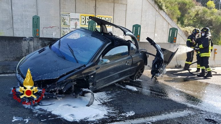 Subito sul posto una squadra dei Vigili del fuoco di Sassari che, dopo aver messo in sicurezza la zona ha provveduto a spegnere le fiamme. La conducente invece è stata affidata alle cure degli operatori del 118 intervenuti.
