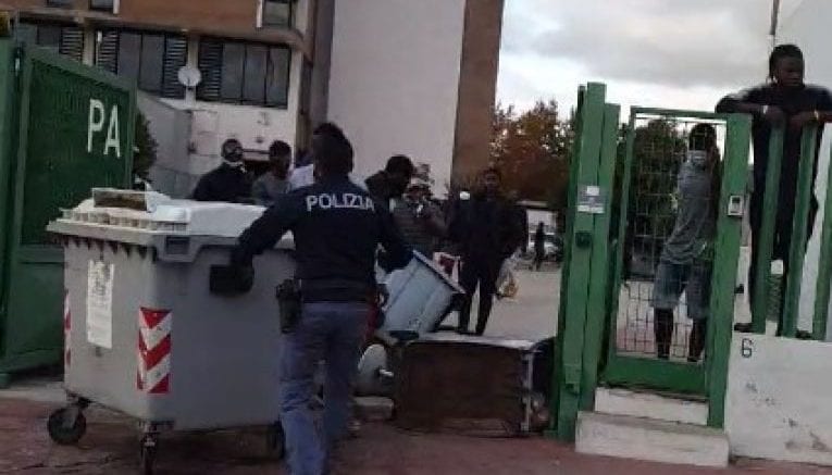 Numerosi extracomunitari, senza mascherina, sono scappati dal Centro recandosi nelle vie adiacenti. Altri, non riuscendo, si sono arrampicati nel parapetto e hanno usato alcuni cassonetti dell’immondizia come scudo contro gli agenti della polizia di Stato e polizia locale, che sono stati pesantemente insultati.