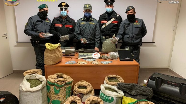 A seguito di perquisizione del veicolo, il giovane è stato trovato in possesso di 5 chili di marijuana, occultata in un vano nascosto ricavato dietro la targa. La Guardia di finanza ha sospettato che il fermato potesse detenere altro stupefacente a casa. I finanzieri hanno quindi contattato la compagnia dei carabinieri di Bono, chiedendo di procedere a perquisizione presso l’abitazione. I militari si sono recati immediatamente sul posto ed hanno sorpreso il fratello del fermato ed un loro zio proprio mentre stavano caricando alcuni sacchi pieni di stupefacente su due fuoristrada, nell’intento di nascondere la marijuana ad un’eventuale perquisizione.