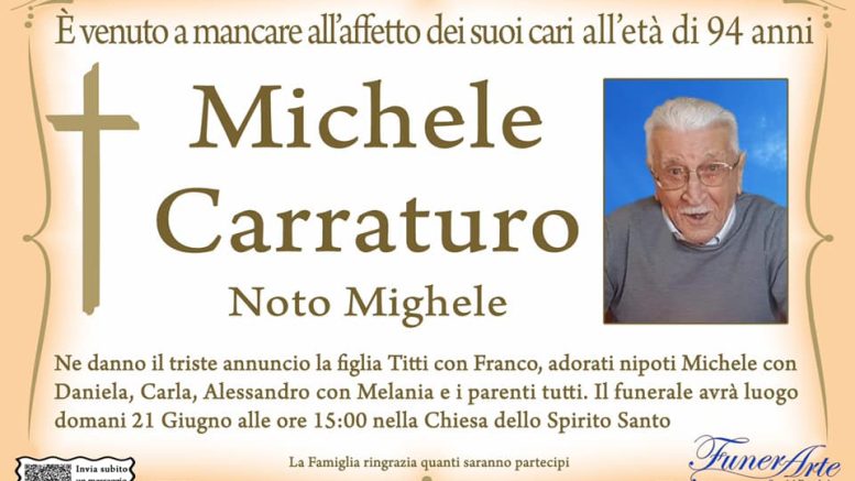 Ne danno il triste annuncio la figlia Titti con Franco, gli adorati nipoti Michele con Daniela, Carla, Alessandro con Melania e i parenti tutti.