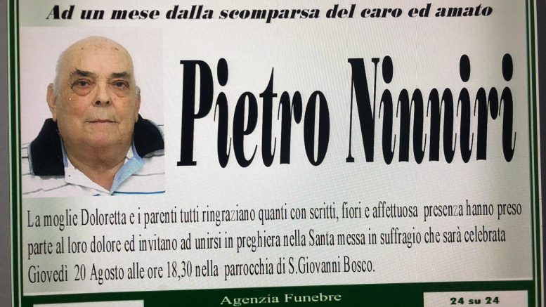 La moglie Doloretta e i parenti tutti ringraziano quanti con scritti, fiori e affettuosa presenza hanno preso parte al loro dolore ed invitano ad unirsi in preghiera nella Santa Messa in suffragio che sarà celebrata giovedì 20 agosto alle ore 18:30 nella parrocchia di San Giovanni Bosco ad Alghero.