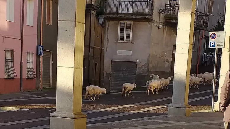 Una simpatica immagine che ha riportato la memoria di molti indietro nel tempo, quando, nel corso delle transumanze, era più frequente vedere le pecore nel centro abitato.
