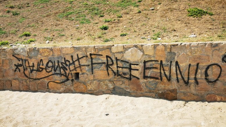 Il Comune ha presentato denuncia contro ignoti per le scritte comparse in più punti sul muretto della spiaggia di Balai.