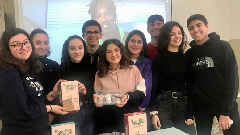 L’idea è partita da uno degli studenti, Francesco. Il progetto si è sviluppato sino a dare origine ad un gustoso biscotto con gocce di cioccolato confezionato con farina di grillo, alimento gluten free e altamente proteico e con bassissimo impatto sull’ambiente.