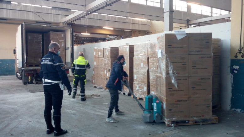A Sassari sono 480mila le mascherine chirurgiche e 150 litri di gel sanificante che sono stati donati dalla Protezione civile regionale a quella comunale. I container sono arrivati questa mattina.