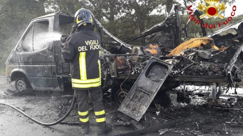Nella tarda mattinata di oggi, a causa di un guasto, un incendio si è propagato in un camper mentre percorreva la strada statale 131 all’altezza di Macomer.