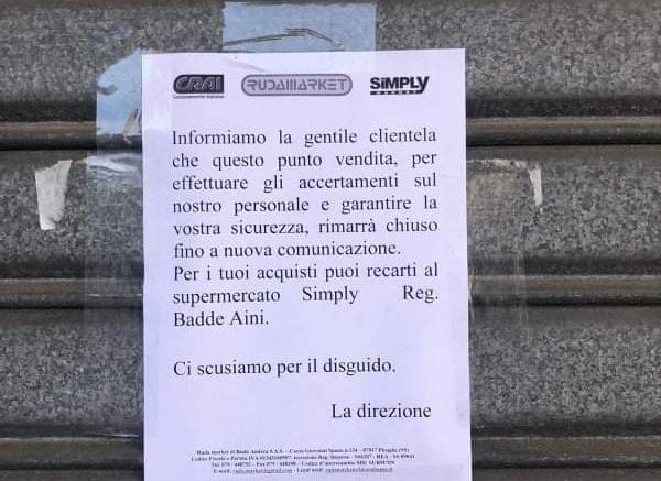 Chiuso il punto vendita Crai di Ozieri di piazza San Sebastiano. La decisione è stata presa in via precauzionale per tutelare la salute dei dipendenti e dei clienti del supermercato ed evitare possibili contagi. Una dipendente è risultata positiva al coronavirus ed è in quarantena da alcuni giorni.