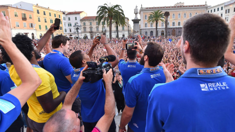 E poi Scott Bamforth, Ousmane Diop e Lorenzo Bucarelli, Dyshawn Pierre, Daniele Magro, Justin Carter, Stefano Gentile, Jaime Smith, Tyrus Mcgee, Rashawn Thomas, Achille Polonara e Jack Cooley, tutti profondamente emozionati e colpiti dall’abbraccio immenso della città. A chiudere, il gigante di casa Marco Spissu: “Quello che vedo davanti a me è incredibile, straordinario, siete qui e così tanti. – ha detto – Credo che una cosa del genere non si sia mai vista altrove”. Poche parole cariche di emozione prima di far esplodere la piazza intonando il coro del Commando, seguito dai cinquemila a squarciagola.