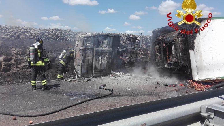 Non è in pericolo di vita in conducente del camion che, intorno alle 12:45 di oggi, si è ribaltato sulla statale 131, causando un incendio. Il ragazzo, un moldavo che viaggiava in direzione Cagliari, era alla guida di un camion frigo e trasportava della frutta. Subito trasferito con l’elisoccorso al San Francesco di Nuoro, ha riportato diverse contusioni, ma è arrivato cosciente all’ospedale. Sul posto sono intervenuti anche i carabinieri e la polizia stradale.