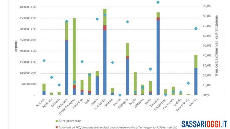 L‘Anac, l’Autorità nazionale anticorruzione, ha condotto uno studio sulle spese fatte dalle regioni italiane per fronteggiare l’emergenza coronavirus e la spesa pro-capite di ciascuna di esse. Lo studio rivela che la Sardegna è tra le regioni che ha speso di meno, 47 milioni di euro, e con una spesa pro-capite tra le più basse d’Italia: 29,2 euro rispetto alla media nazionale di 42 euro.