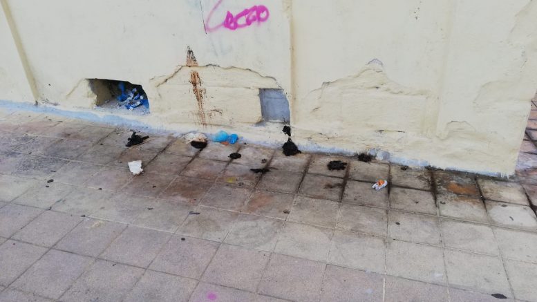Nei pressi della cabina elettrica, sono numerose le tracce lasciate perlopiù dagli umani. Se il problema in origine era quello degli amici a 4 zampe, ora quello principale è costituito da quelli a 2 gambe.