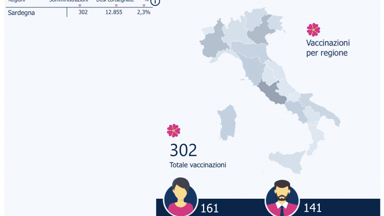 Va avanti a rilento la campagna di vaccinazione anti Covid-19 in Sardegna. Su 12.855 dosi consegnate, sono appena 302 quelle iniettate. Ossia il 2,3% del totale. Le prime vaccinazioni sono state effettuate all’ospedale Binaghi e al Brotzu di Cagliari.