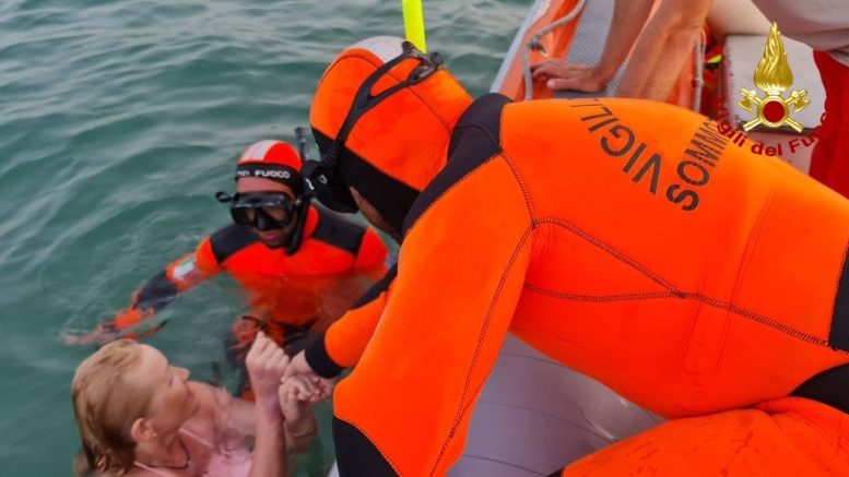 Raggiunta da un gommone della squadra dei sommozzatori dei vigili del fuoco di Sassari, è stata dapprima aiutata ad indossare un giubbino di salvataggio. Poi è stata issata sul gommone per esser consegnata alle cure del 118 che attendeva in riva. Il coordinamento tra Guardia costiera, vigili del fuoco e gli altri enti coinvolti ha permesso di evitare una probabile tragedia.