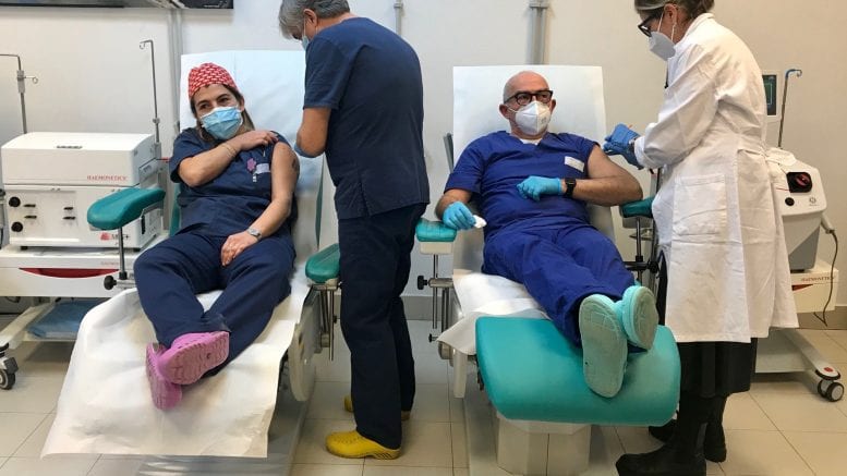 Come previsto dal cronoprogramma, alle 13 e 30 sono state somministrate le prime dosi del vaccino ai medici e agli infermieri incaricati di effettuare le vaccinazioni e dalle 15 sono state conferite le prime dosi ad alcuni dei medici e degli infermieri impegnati nel reparto di Terapia Intensiva dell’ospedale Civile, nel reparto Covid dell’ospedale Marino e in altri reparti ospedalieri e servizi territoriali. Le vaccinazioni sono avvenute negli spazi del Servizio Trasfusionale.