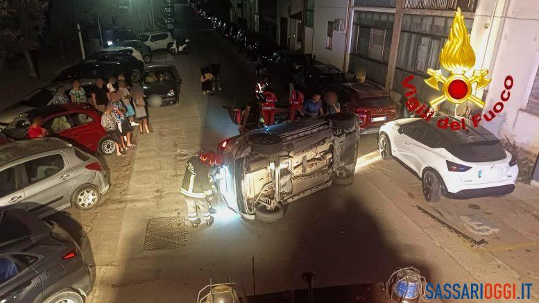 Incidente per una donna ad Alghero, l’auto si ribalta su un fianco
