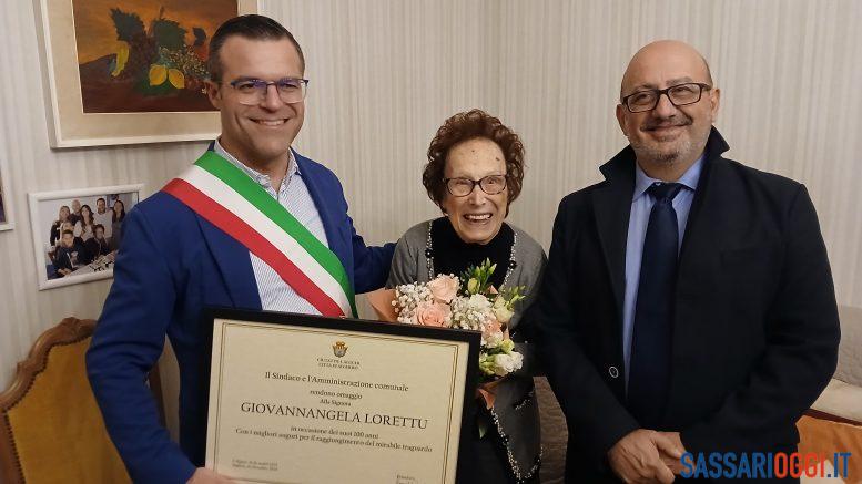 Alghero ha una nuova centenaria e le massime autorità del Comune sono andate a renderle il giusto omaggio. Oggi il sindaco Raimondo Cacciotto, e il presidente del Consiglio comunale, Mimmo Pirisi, sono andati a festeggiare Giovannangela Lorettu.