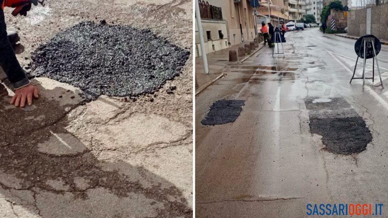 Il Comune di Alghero annuncia lavori col nuovo asfalto su tante strade, ma nel frattempo rattoppa le prime buche. Il sindaco Raimondo Cacciotto pubblica le immagini e nessuno esulta per la qualità dell’intervento. Non una vera riparazione, ma un rattoppo.