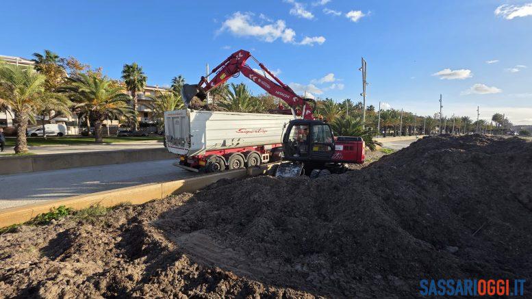 Lavori in corso sul litorale di San Giovanni, prelievo della posidonia ad Alghero