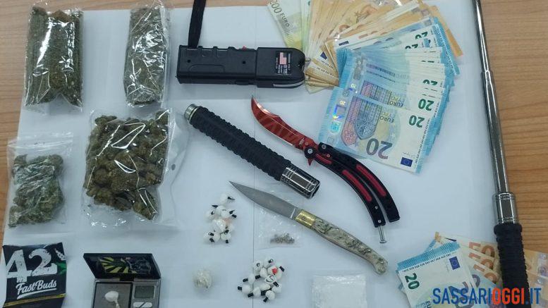 L’attività eseguita, estesa anche all’abitazione del giovane algherese, ha permesso di recuperare diversa sostanza stupefacente, già confezionata in dosi e pronta per essere ceduta ad altri. Nello specifico, sono stati sequestrati ventisei dosi di cocaina, due dosi di Mdma, 10 grammi di Ketamina, 50 infiorescenze di marijuana dal peso complessivo di 100 grammi, circa 60 grammi di marijuana già tritata, un taser / dissuasore elettrico, un coltello a farfalla con lama dalla lunghezza di 9 centimetri, un bastone telescopico, un bilancino elettronico di precisione e 2.550 euro in banconote di diverso taglio, probabile provento di spaccio di sostanze stupefacenti.