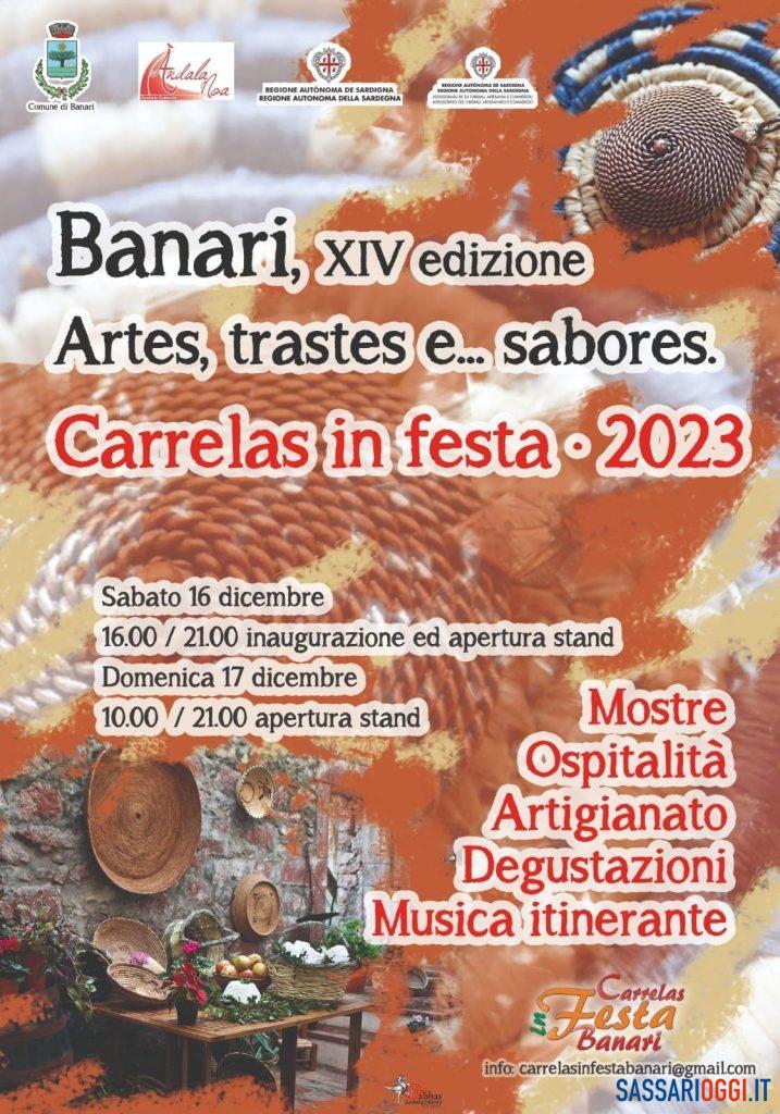 Ritorna a Banari la manifestazione comunitaria “Carrelas in Festa”, per la 14esima vola le vie del paese si aprono a tutti. Sabato 16, dalle 4 del pomeriggio alle 21, e domenica 17, dalle 10 del mattino, le strade del paese della trachite rossa e della cipolla ospiteranno la quattordicesima edizione all’insegna delle mostre, dell’artigianato, delle degustazioni e della musica itinerante.