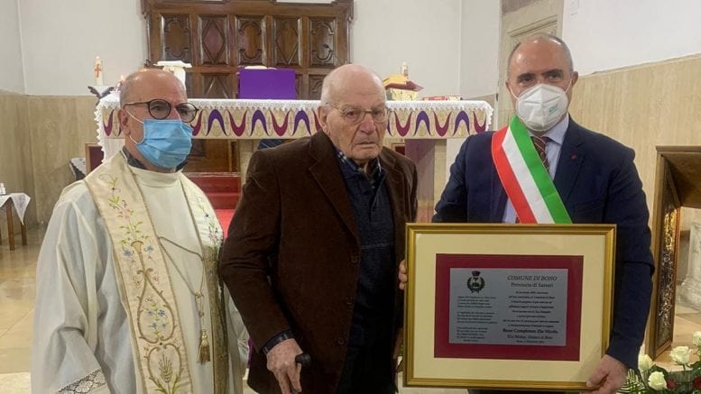 La comunità di Bono festeggia i 100 anni di Nicola Delogu. Stamane al termine della Messa festiva il sindaco, Elio Mulas, e il parroco, don Mario Curzu, hanno formulato al centenario i loro auguri.