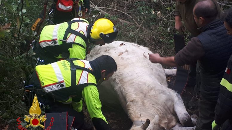 Soccorso animale. Intorno alle 11 e 30 di oggi la sala operativa dei vigili del fuoco ha ricevuto richiesta di intervento per soccorrere una mucca che era caduta in un dirupo.