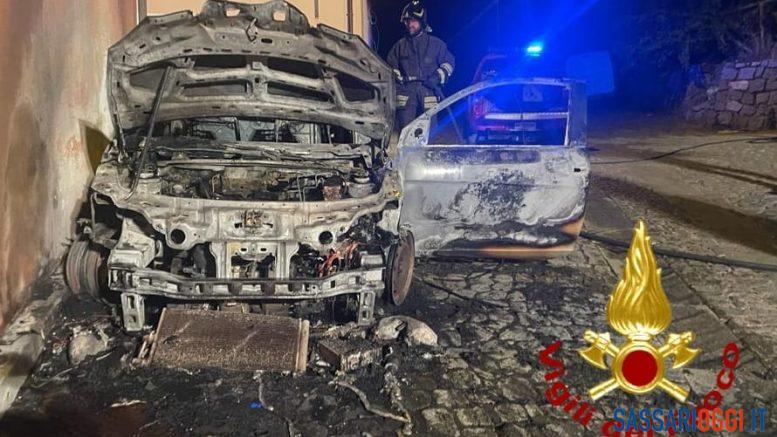 Auto in fiamme nella notte a Burgos.