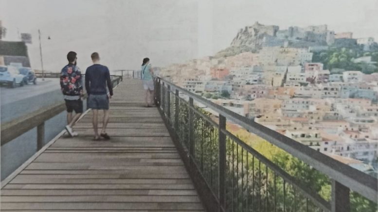La via Sedini sarà invece arricchita con la realizzazione di una “pensilina belvedere” e di nuovi marciapiedi, anche sul lato a mare della carreggiata, che consentiranno un’ininterrotta passeggiata panoramica sino all’uscita del centro abitato. Alla fine di via Sedini, infatti, esiste ora un grande parcheggio per i bus e autovetture, delimitato in parte con un muro di calcestruzzo in parte rivestito di pietra, mai completato. Il nuovo progetto prevede ora l’eliminazione del muro che impedisce la visuale panoramica – dando anzi l’idea di abbandono e di indecoro dell’area – e la sostituzione dello stesso con una ringhiera. Il marciapiede sarà completato con la posa di una pavimentazione architettonica.