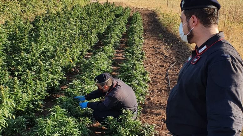 Durante un mirato servizio di osservazione in zona impervia e difficilmente raggiungibile, i militari hanno sorpreso il giovane nell’atto di innaffiare e curare una piantagione illegale di Cannabis Indica composta da 262 piante di tipo nano, tutte in buono stato vegetativo, disposte su filari regolari in un piccolo appezzamento di terreno ricavato a ridosso di un muretto a secco che ne garantiva il completo occultamento. Attraverso un elaborato sistema di comunicazione tra cisterne in vetroresina distanti tra loro circa 150 metri e collegate mediante un tubo in PVC, le piante venivano innaffiate con un impianto di irrigazione a goccia.