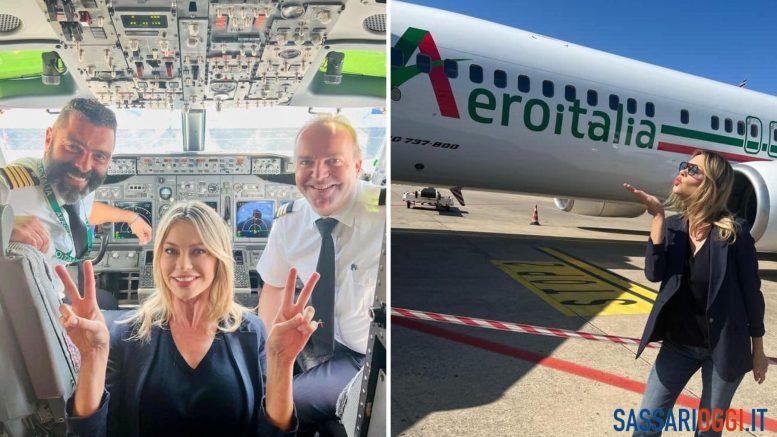 “La bella e brava Anna Falchi sul nostro volo Aeroitalia Alghero-Roma”, così la compagnia accompagna le foto della conduttrice tv di origine finlandese. Sulla pagina Facebook della nuova compagnia aerea sono state pubblicate quattro foto scattate all’aeroporto Riviera del Corallo.