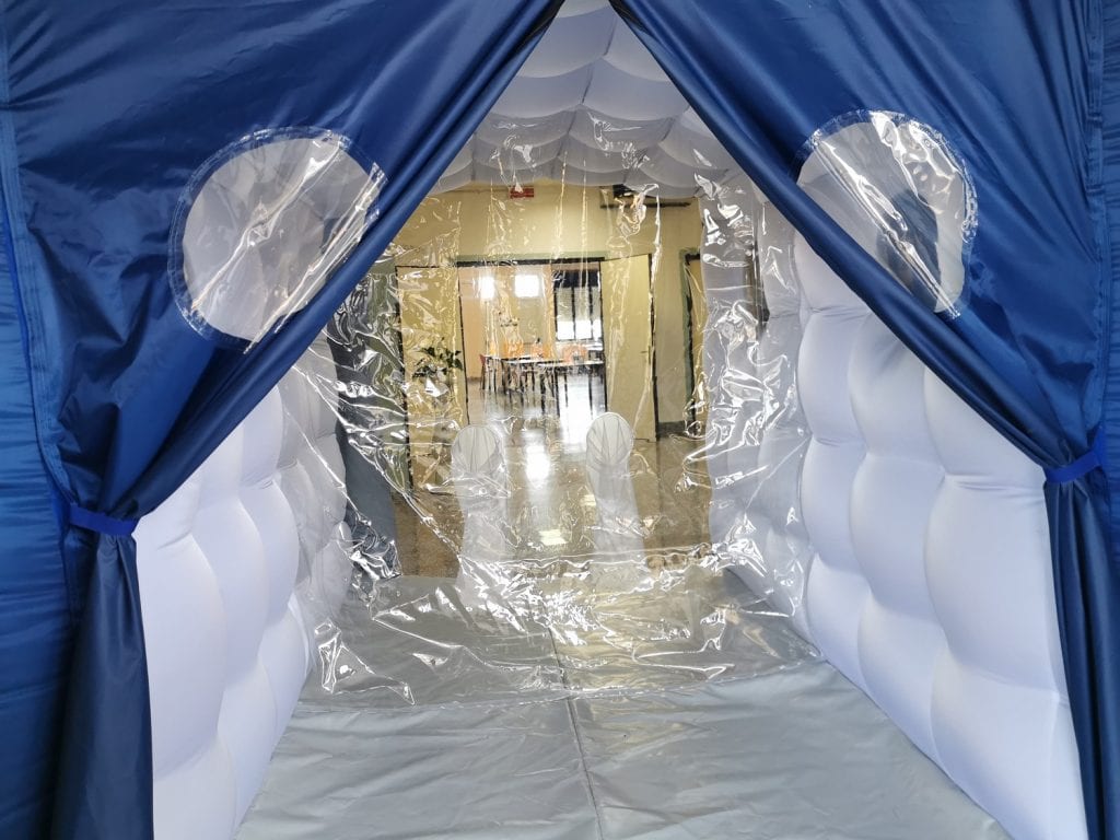 Sperando che vaccini, precauzioni e profilassi consentano di stoppare a breve la diffusione del virus e la fine del pericolo pandemico che tanto influisce sulle interazioni sociali, Villa dei Giunchi ha deciso di investire, di contattare l’azienda del nord Italia che ne detiene il brevetto e di acquistare due case degli abbracci, tante quante le due strutture gestite attualmente sotto il marchio Senior People Care, una a Florinas e l’altra in Abruzzo. Da oggi a Florinas ci si potrà nuovamente stringere in un confortante, rasserenante e sanissimo abbraccio. Diretto ma a prova di Covid, perché la stanza gonfiabile è stata piazzata in uno degli ingressi della casa di riposo, così che i familiari possano accedere dall’esterno e gli anziani non debbano uscire dalla struttura, che è riscaldata e sarà igienizzata dopo ogni utilizzo.