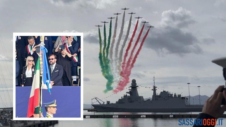 A tutti gli invitati presenti nella tribuna autorità è stata offerta la coccarda tricolore da esporre in bella vista. Tutti la indossavano, tranne Moro. Per ben due volte gli è stata offerta e altrettante volte l’ha rifiutata. Non è stata una giornata semplice per il politico sassarese. Lui da assessore ai Trasporti si batte contro la fusione degli aeroporti e al suo fianco c’era Maurizio De Pascale, presidente di Confindustria Sardegna e della Camera di commercio di Cagliari e Oristano. Il principale sostenitore della società unica per la gestione degli aeroporti di Alghero, Olbia e Cagliari sedeva vicino alla controparte. Moro era lì, in quel tripudio di bandiere e Frecce tricolori, e magari si è pentito di non aver rifiutato l’invito istituzionale. A consolarlo ci ha pensato il “151º Reggimento fanteria” che davanti alle autorità ha urlato il nome della Brigata: “Sassari”.