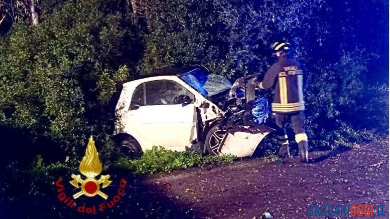 Intervento dei vigili del fuoco e del 118 nella notte tra Olmedo e Sassari, una donna ferita dopo che l’auto è finita contro un albero. L’allarme è scattato verso l’1:30 per un incidente lungo la Provinciale 19. Una Smart è finita fuori strada e dopo aver percorso diversi metri ha terminato la sua corsa contro i grossi rami di un albero.