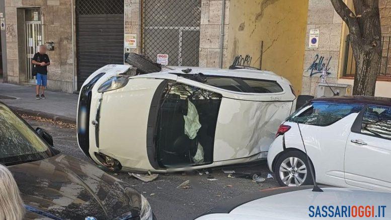 Ieri, nel primo pomeriggio di sabato 20 settembre, in viale Umberto I a Sassari un’auto si è ribaltata dopo uno scontro con alcuni veicoli in sosta. Alla guida della Fiat Grande Punto c’era una ragazza giovane, che ha perso il controllo del mezzo per motivi ancora poco chiari.
