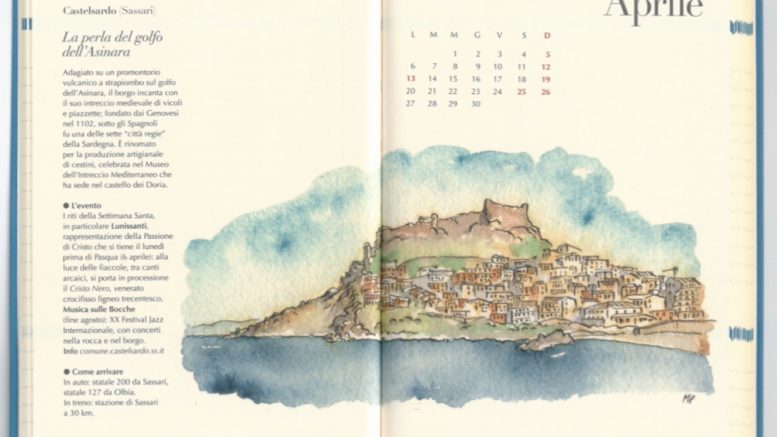 L’agenda 2020 del prestigioso mensile di viaggi e turismo “Bell’Italia” celebra Castelsardo come unica Città della Sardegna, con una illustrazione di Matteo Pericoli, noto architetto e disegnatore.