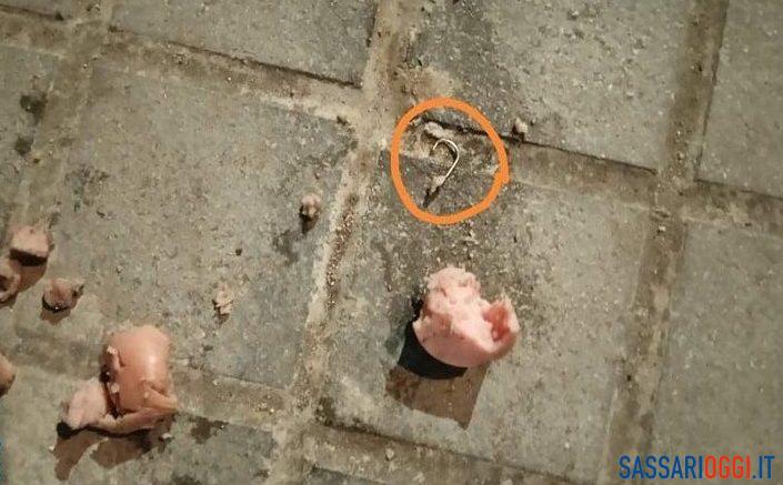 Bocconi killer con ami da pesca distribuiti ieri notte nel quartiere di San Giuseppe a Sassari.
