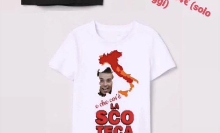 Non solo, da qualche giorno infatti i ragazzi hanno creato delle magliette che hanno poi messo in vendita, forse per poter pagare le multe, che riportano il nome del garage (ormai chiamato “Scoteca”) e ritraggono il volto di uno dei ragazzi con la mappa dei colori dell’Italia. Gesti ironici e goliardici di giovani ragazzi, che reagiscono con l’ironia alla disavventura di qualche giorno fa.