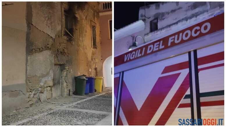Piovono calcinacci da una vecchia palazzina a Sorso.