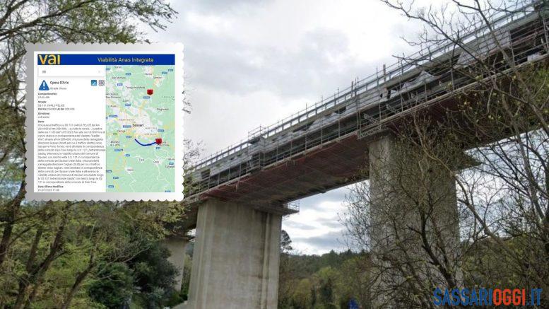 - “Chiusura della carreggiata direzione Sassari (Nord) – comunica l’Anas -. Per cui il traffico diretto verso Sassari e Porto Torres, verrà dirottato in corrispondenza dello svincolo Ossi-Tissi lungo la S.S. 127 “Settentrionale Sarda” attraverso la viabilità urbana del Comune di Sassari, con rientro nella S.S. 131 in corrispondenza dello svincolo per Sassari Viale Italia“.