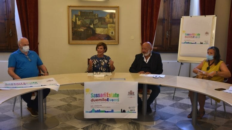 Musica, cinema, teatro. E ancora: intrattenimenti per bambini, danza e reading. Il coronavirus non ferma l’estate sassarese. Il Comune è infatti riuscito a organizzare a tempo di record, in collaborazione col mondo della cultura del territorio, un variegato cartellone di cento iniziative che accompagneranno la città da metà luglio fino a metà settembre. Nonostante le tante difficoltà legate al particolare momento che si sta vivendo e a quelle sempre presenti delle ridotte risorse finanziarie per le pubbliche amministrazioni, Sassari avrà iniziative quotidiane diffuse nelle aree ritenute adatte e sicure: piazza Monica Moretti, il cortile dell’istituto comprensivo “S. Farina – San Giuseppe” (ex scuola media 2), l’area privata vicino al piazzale Antonio Segni e il parco in via Venezia, oltre ad altri spazi concessi per specifici eventi. Si tratta di siti che offrono dai 30 ai mille posti. Il programma, con tutti i particolari, è stato presentato, oggi, lunedì 13 luglio, nella sala conferenze di Palazzo Ducale dall’assessora alla Cultura Rosanna Arru, dal vicepresidente della Fondazione di Sardegna Salvatore Rubino, dal dirigente del settore Cultura Roberto Campus e dalla funzionaria Elisa Fiori.