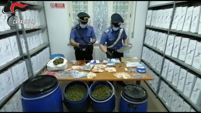 I militari, dopo un appostamento, avevano modo di appurare la segnalazione ricevuta ed a quel punto hanno deciso di intervenire e procedere con un controllo presso l’abitazione in questione. Dopo le attività di verifica e perquisizione che consentivano di rinvenire oltre 10 chilogrammi di marijuana in boccioli ed infiorescenze, 700 grammi di hashish, 100 grammi di cocaina, materiale per il taglio della sostanza stupefacente e per il confezionamento, diversi bilancini di precisione e 6.000 euro in contanti, verosimile provento dell’attività di spaccio, traevano in arresto in flagranza di reato per detenzione ai fini di spaccio di sostanze stupefacenti G.P., 39enne di Bosa, incensurato.