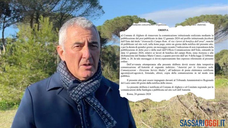 L’Autorità per le garanzie nelle comunicazioni ha ordinato “al Comune di Alghero di rimuovere la comunicazione istituzionale realizzata mediante la pubblicazione del post pubblicato in data 12 gennaio 2024 sul profilo istituzionale facebook dell’Ente dal titolo “Arenosu/Ex Campo Rom. Al via i lavori di bonifica dell’area””. Questi gli ordini arrivati da Roma ad Alghero.