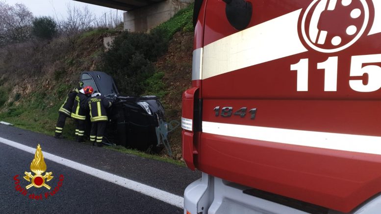 Intorno alle 9 e 15 la sala operativa dei Vigili del fuoco ha ricevuto richiesta di intervento per un incidente stradale, prontamente è stata inviata la 1A dalla sede Centrale. Per cause in corso di accertamento l’auto è uscita di strada ribaltandosi sul fianco in un piccolo fossato vicino alla carreggiata.