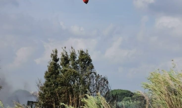 Un elicottero del Corpo forestale proveniente dalla base di Bosa sta intervenendo su un incendio in agro del comune di Alghero, località Fertilia.