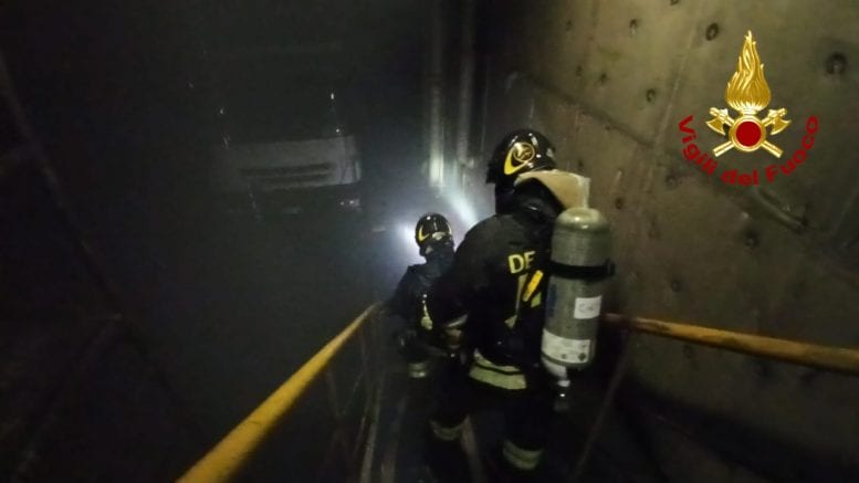 Fortunatamente il sistema antincendi della nave ha permesso di contenere le fiamme, permettendo alla nave di fare ritorno al porto di Genova dove sono intervenuti i Vigili del fuoco che hanno completato le operazioni di spegnimento e di verifica dei danni. Sono una ventina i mezzi danneggiati.