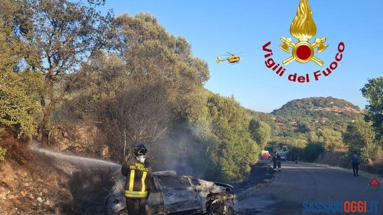 L’incidente è avvenuto intorno alle 19. Immediato l’intervento dei vigili del fuoco di Sassari, i quali hanno anche domato l’incendio divampato dall’auto sulla vegetazione. Le due squadre dei vigili del fuoco hanno spento le fiamme dell’auto e della vegetazione circostante, bonificando lo scenario affinché il personale medico potesse operare in sicurezza.