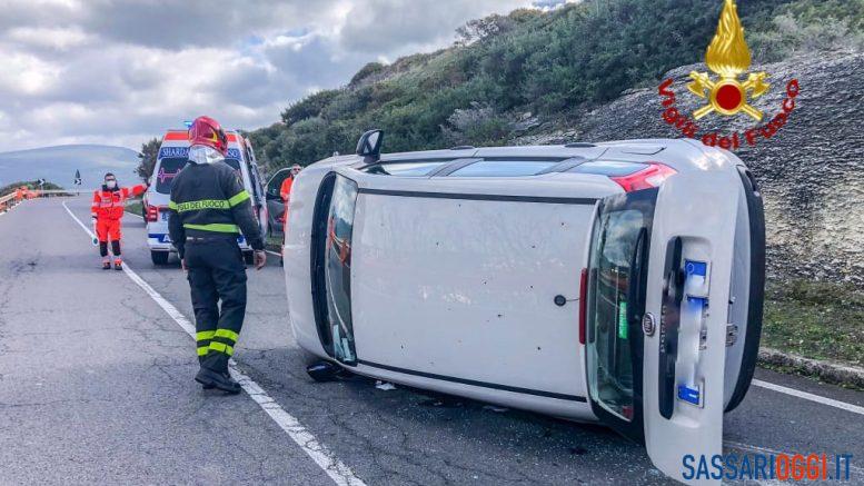 Incidente questa mattina intorno alle 11 sulla statale 292, appena fuori l’area urbana di S’Archittu. Per cause in corso di accertamento un’auto si è ribaltata.